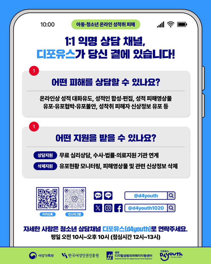 (공지사항) 아동·청소년 온라인 성착취 피해 상담채널 『디포유스』